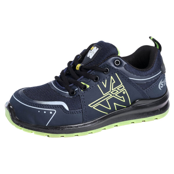 CHAUSSURES BASSES DE SÉCURITÉ disponible en Marine/Jaune fluo et en modèle Femme Noir/Fushia, tailles 36 au 41.