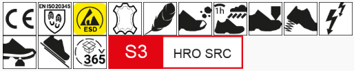 Certifié EN ISO 20345:2011 S3 HRO SRC avec propriétés comparables à la nouvelle norme EN ISO 20345:2022