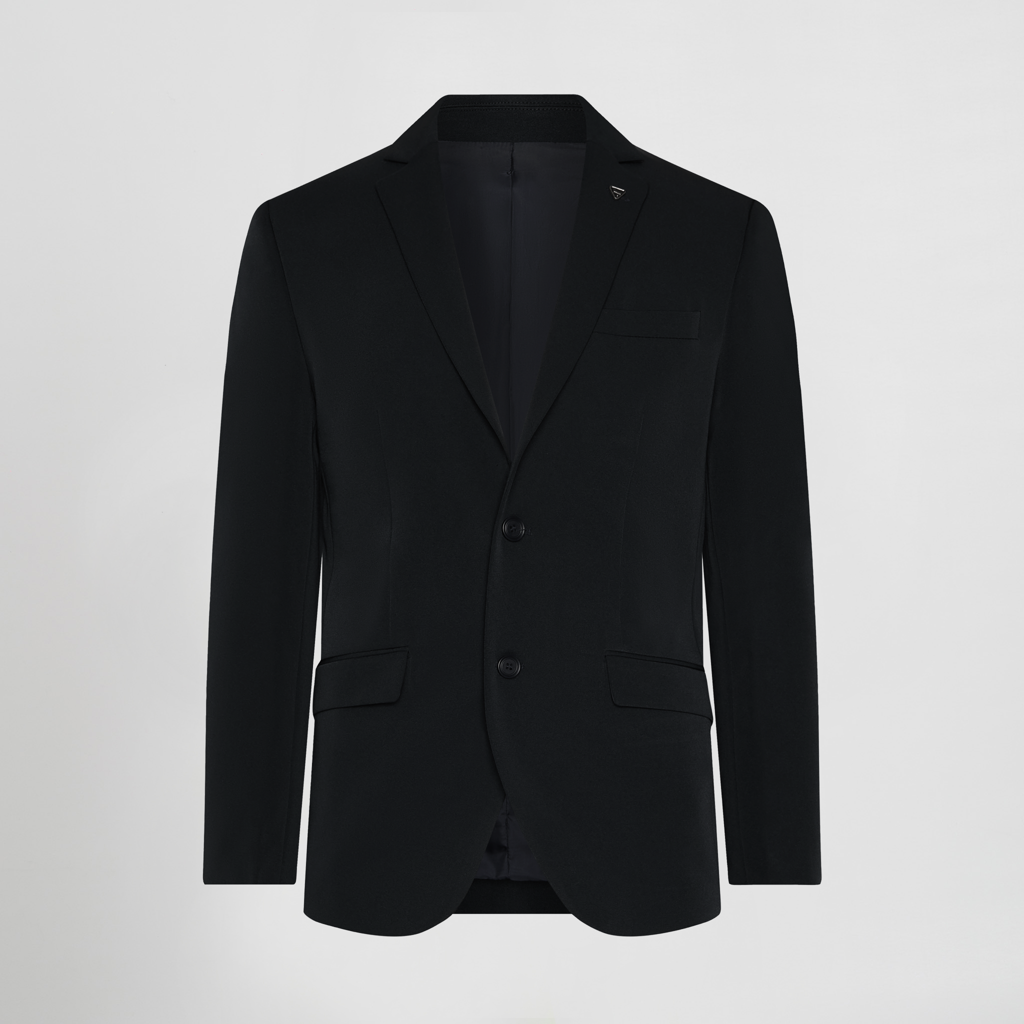 Cette veste de costume est fabriquée en tissu TECNO, composé de 96 % de polyester et de 4 % d’autres matériaux.